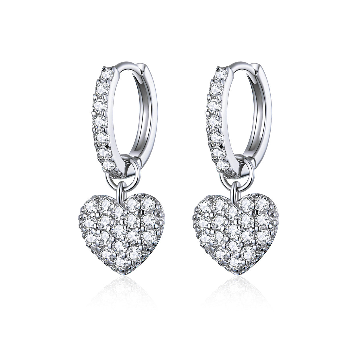 Our Heart Drop Earrings feature gorgeous cubic zirconia stones. Crafted from sterling silver, they are simple yet sophisticated, making them the ideal accessory to enhance any ensemble.