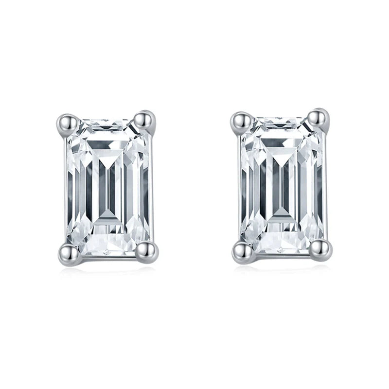 Elevate your everyday look with these stunning Emerald Cut Moissanite Stud Earrings. The brilliant emerald cut lab grown diamond stones shine with fire and brilliance, making a statement with every move. Crafted with high quality moissanite, these earrings bring effortless elegance to any outfit. Upgrade your accessory game today!