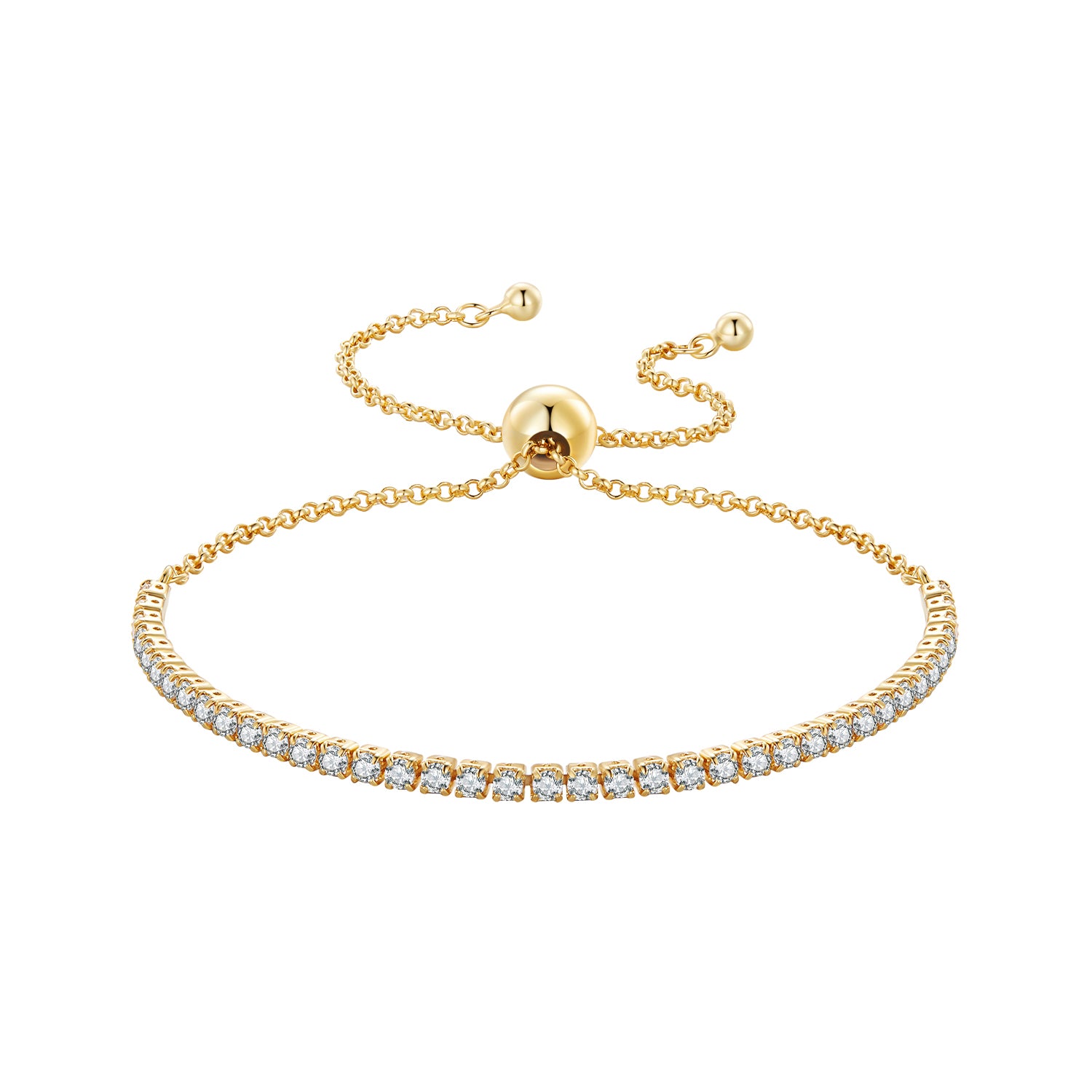 Experience the allure of our gold sparkling strand bracelet. Featuring glimmering stones, this tennis bracelet is sure to add a touch of elegance to your look. Feel the ethereal beauty of the sparkling strand as it delicately adorns your wrist, making a statement that is both timeless and luxurious.