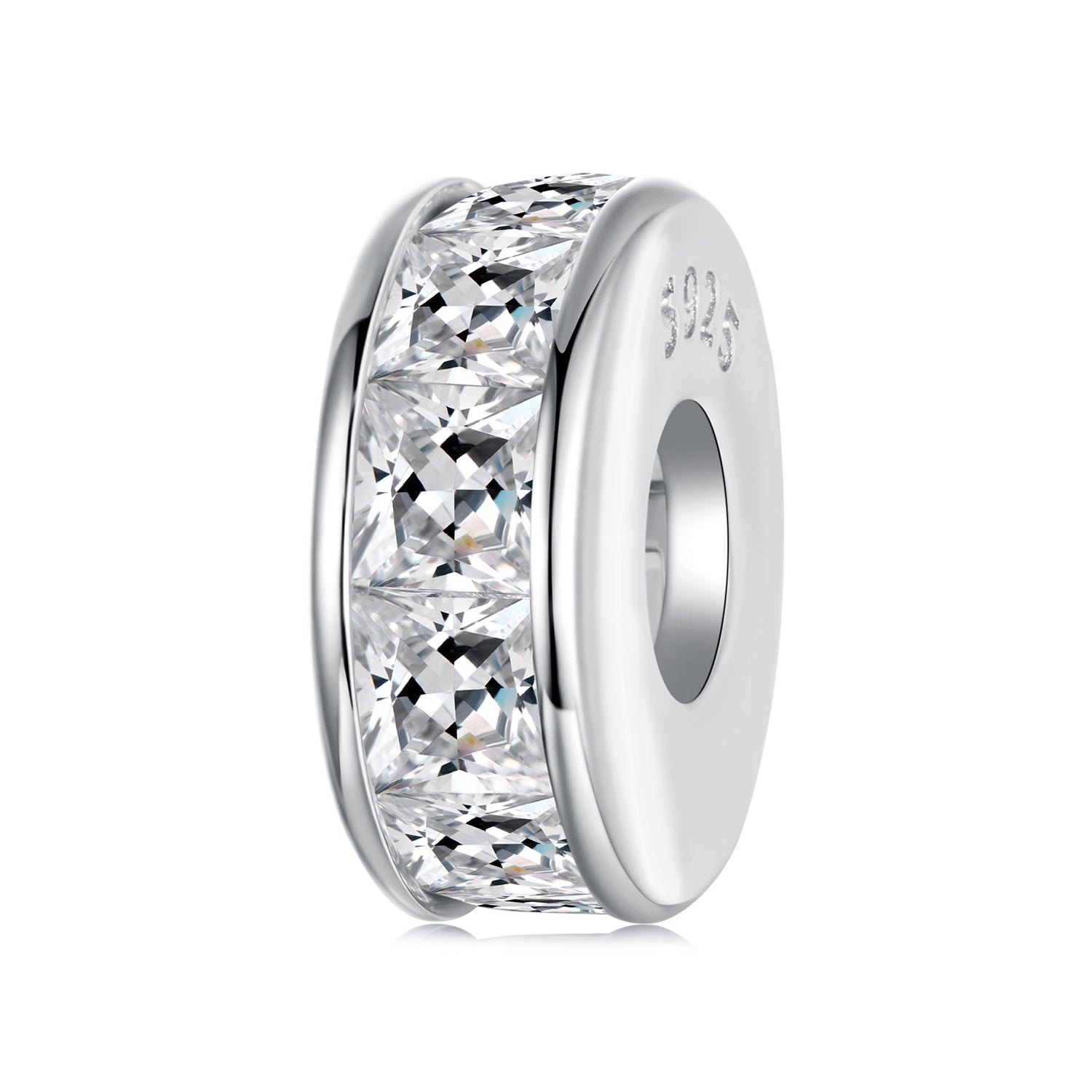 Add a glamorous touch to your bracelet with our Princess Cut Spacer Charm, beautifully embellished with eye-catching cubic zirconia stones. This sparkling spacer can be used to separate your charms or to frame your favourite charms.